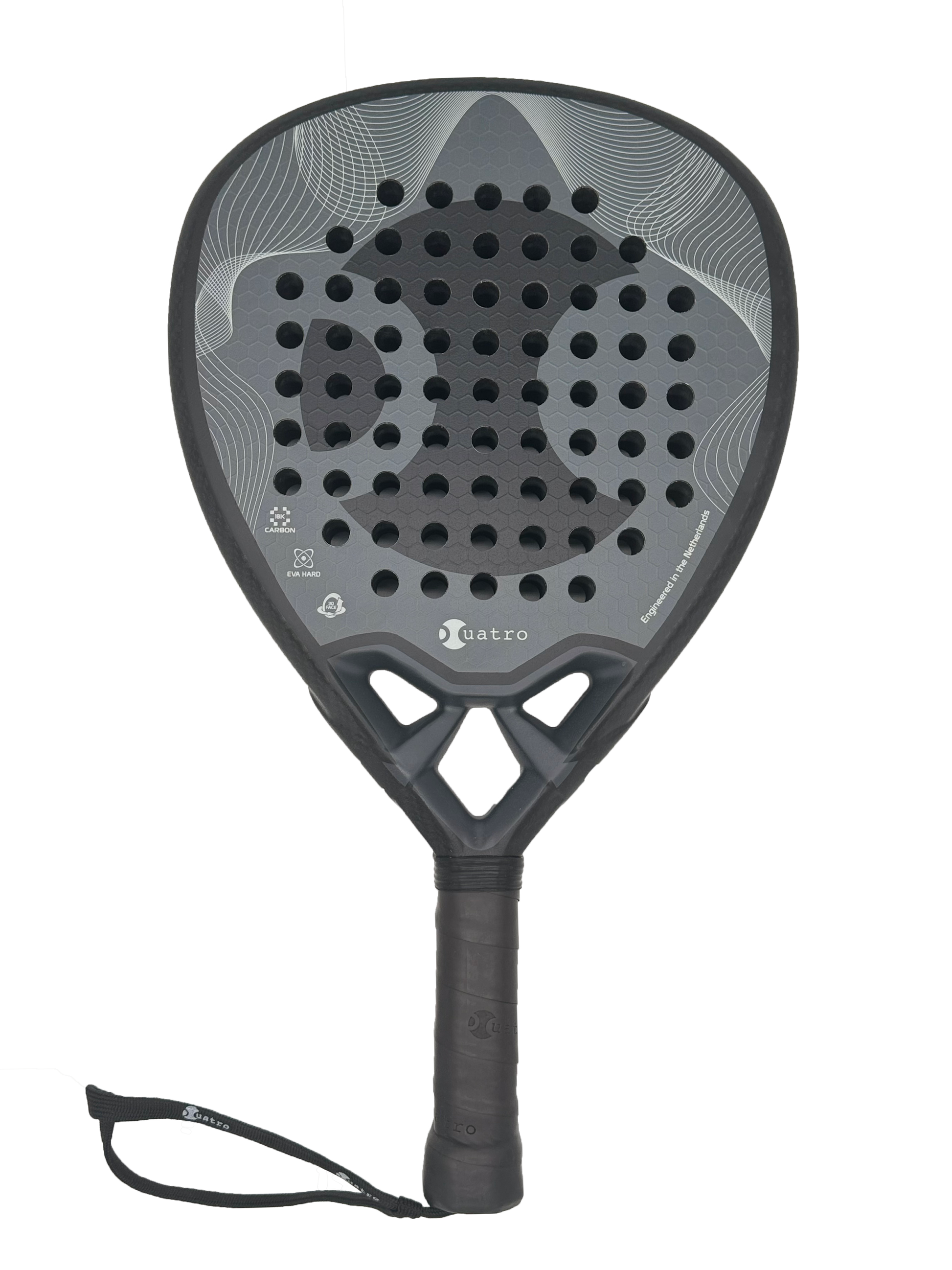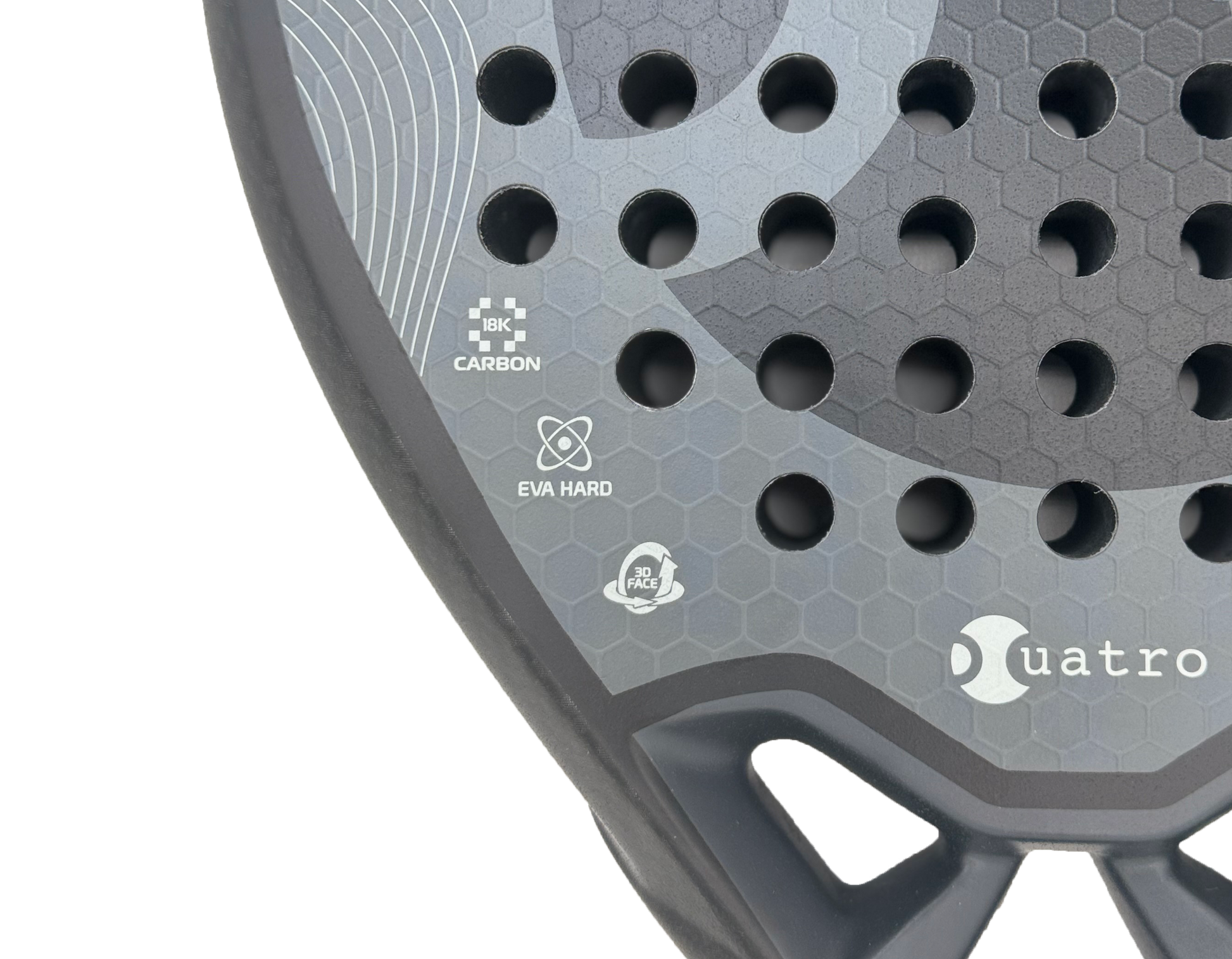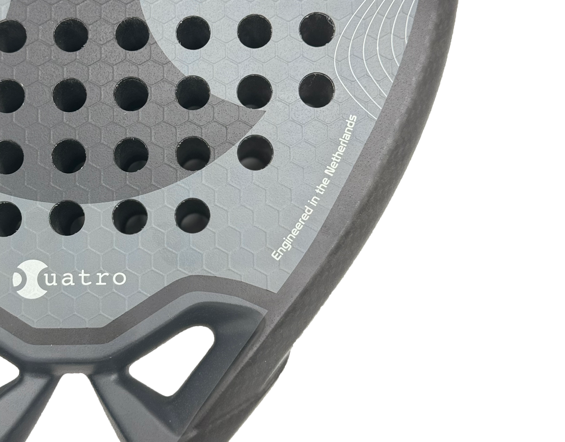 The Cuatro holes design allows aerodynamics, control, power, and spin. The Cuatro holes design reduces air resistance, making the racket faster and easier to swing. This holes pattern helps with quick reactions at the net.